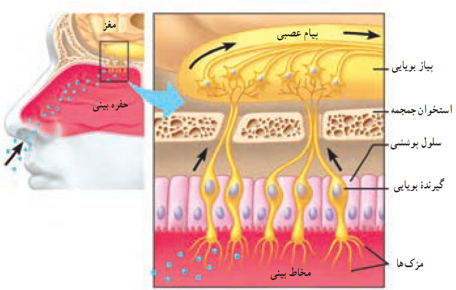 اما در سطح شکمی لُب بویایی، بخش های از مخ و مخچه، کیاسمایی بینایی، جسم خاکستری(بخشی از هیپوتالاموس)محل اتصال هیپوفیز،مغز میانی،پایک های مغزی،شیار پیشین،پل مغزی، بصل النخاع وقسمتی از نخاع.